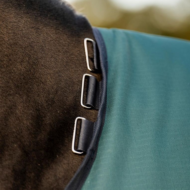 Conçue avec une fermeture frontale classique et des arrondis au niveau des jambes avant, cette couverture offre une liberté de mouvement maximale. Les boucles pour doublure permettent d’ajouter facilement une doublure Horseware® pour plus de chaleur par temps froid. La couverture est livrée avec un couvre-cou détachable, permettant de l’adapter à différents scénarios météorologiques.