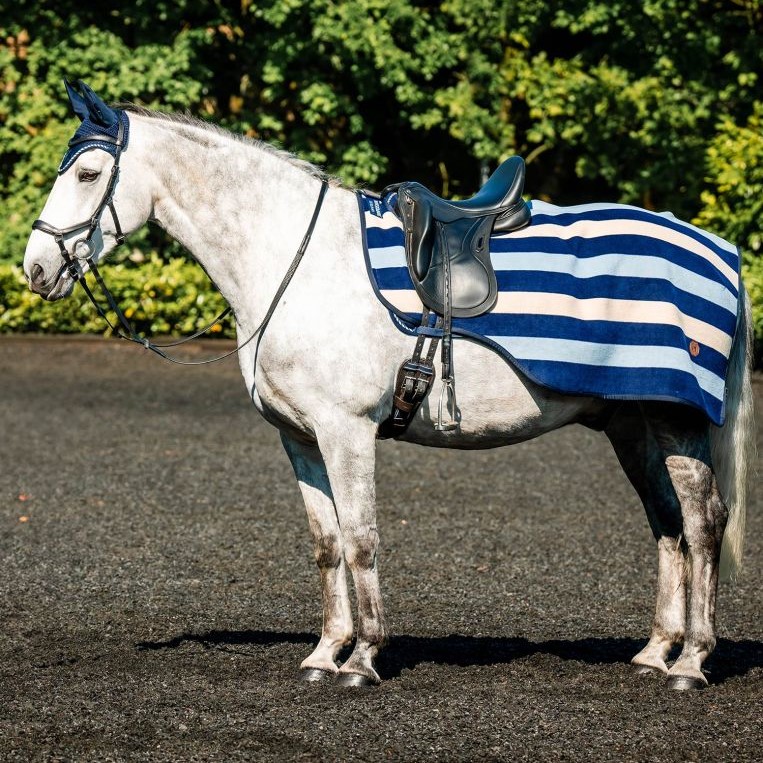 Le motif à rayures Newmarket Witney et les détails en cuir intemporel apportent un style accrocheur au couvre-reins. Se fixe à l'avant de la selle à l'aide d'une fermeture velcro et à l'arrière à l'aide d'un cordon de queue.